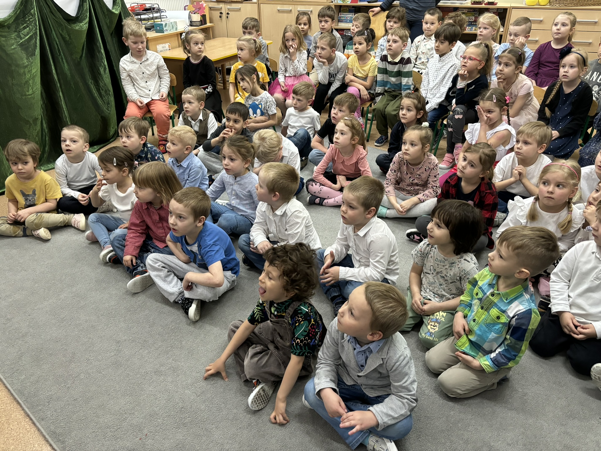 11 kwietnia do naszego przedszkola gościnnie przyjechał Tetr Latarenka z przedstawieniem pt. "Wesoła Chatynka". Twórczynie „Latarenki” wyczarowały cudowną scenografię. Niezwykły spektakl światła, cienia i muzyki.
