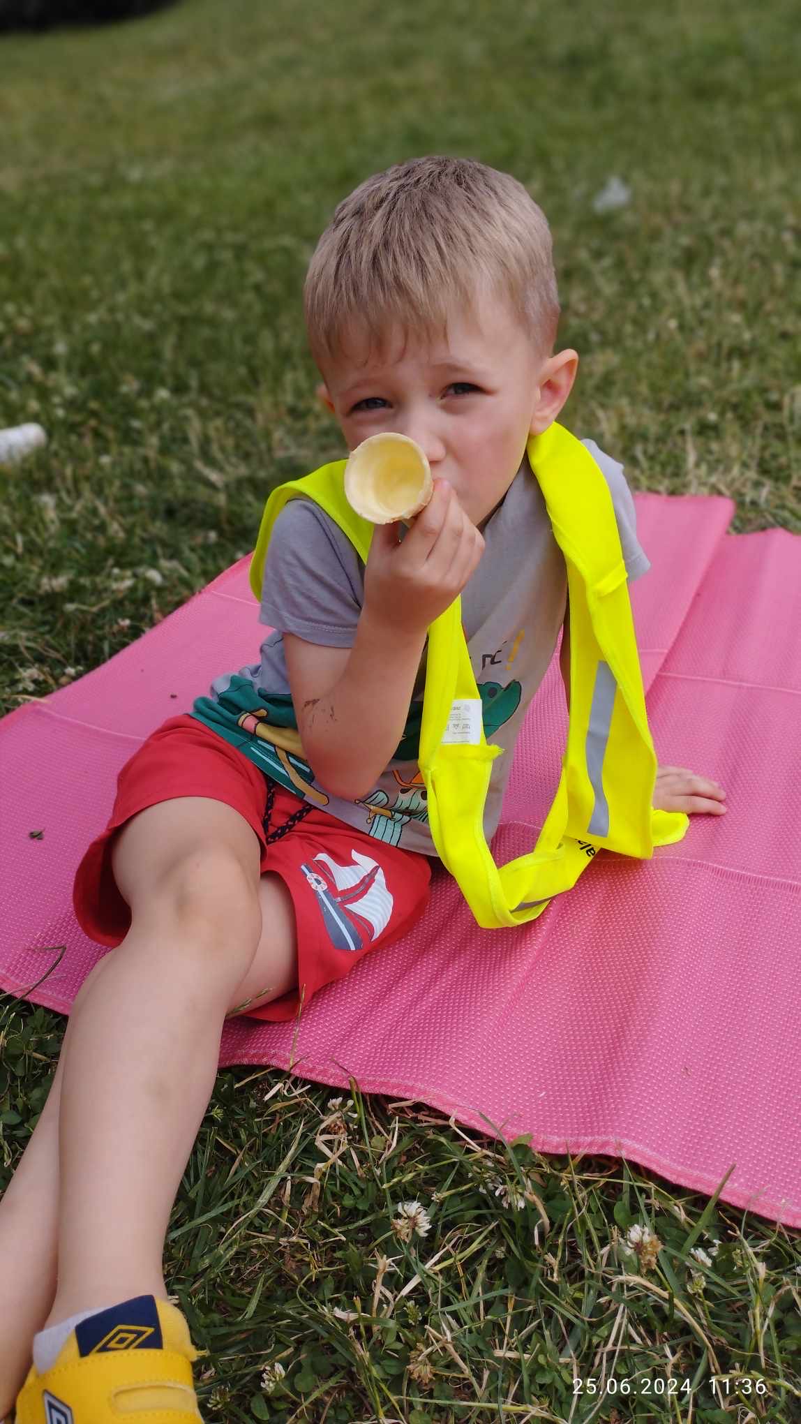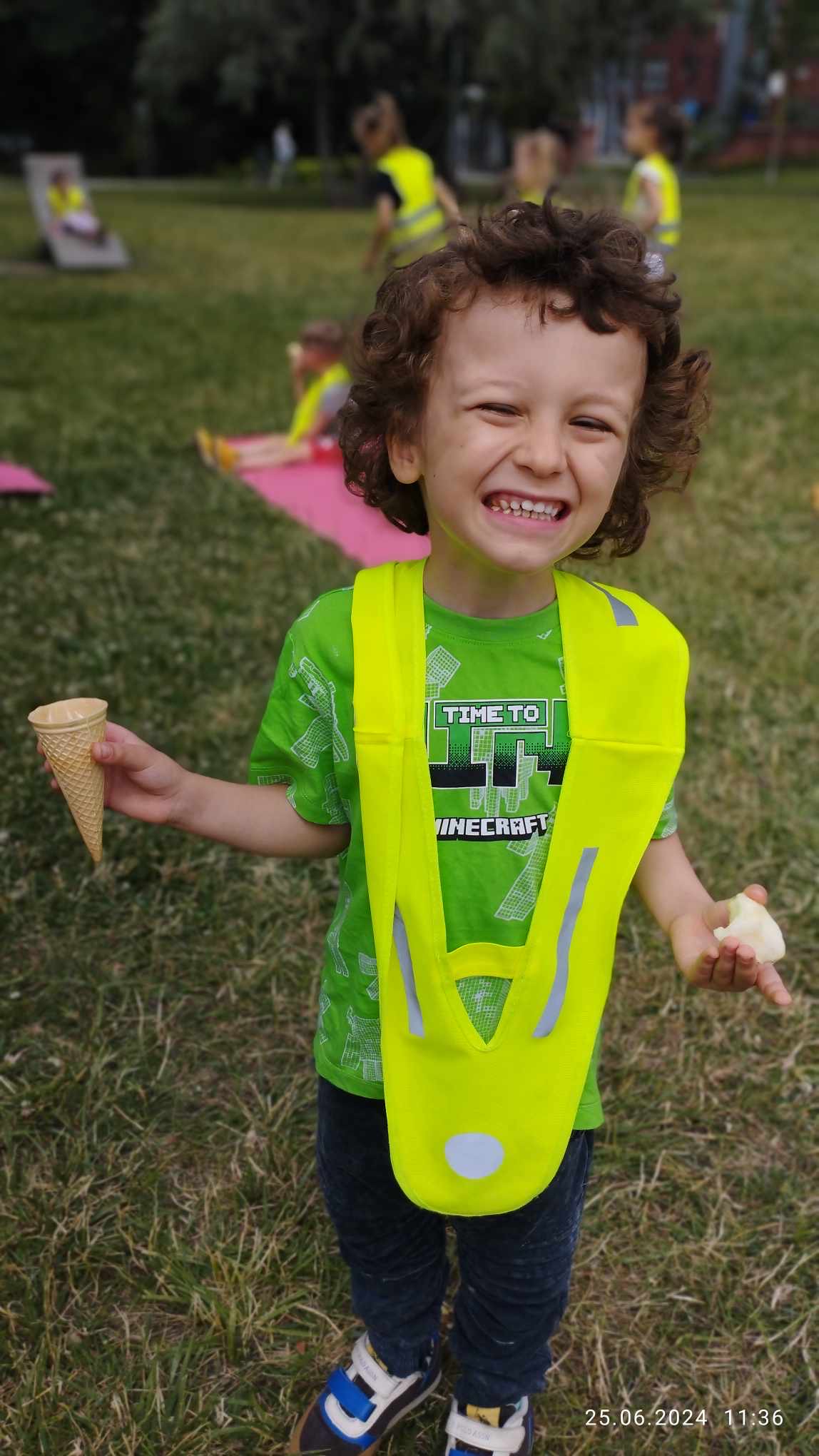Latem dzieci bawią się na trawie, a lody smakują wyśmienicie