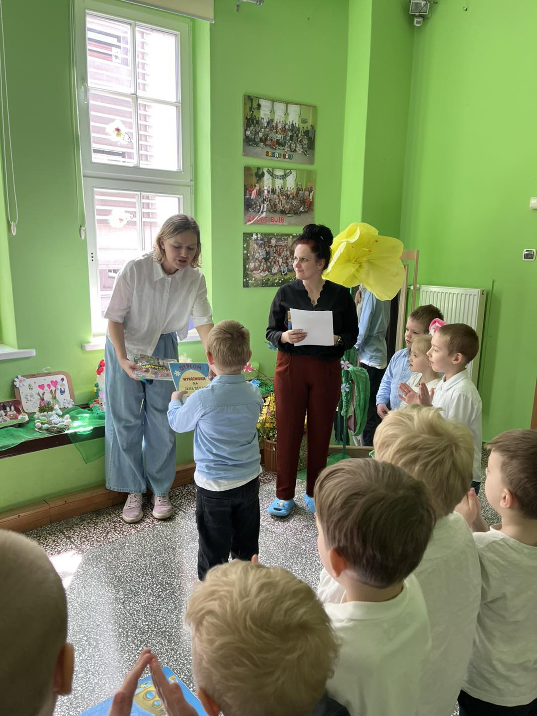Rozstrzygnięcie międzyprzedszkolnego konkursu na stroik wielkanocny z materiałów do recyklingu oraz wręczenie nagród.