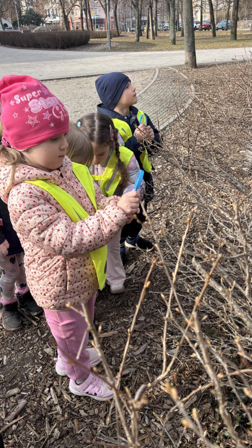 Krasnale na spacerze w poszukiwaniu pierwszych oznak wiosny