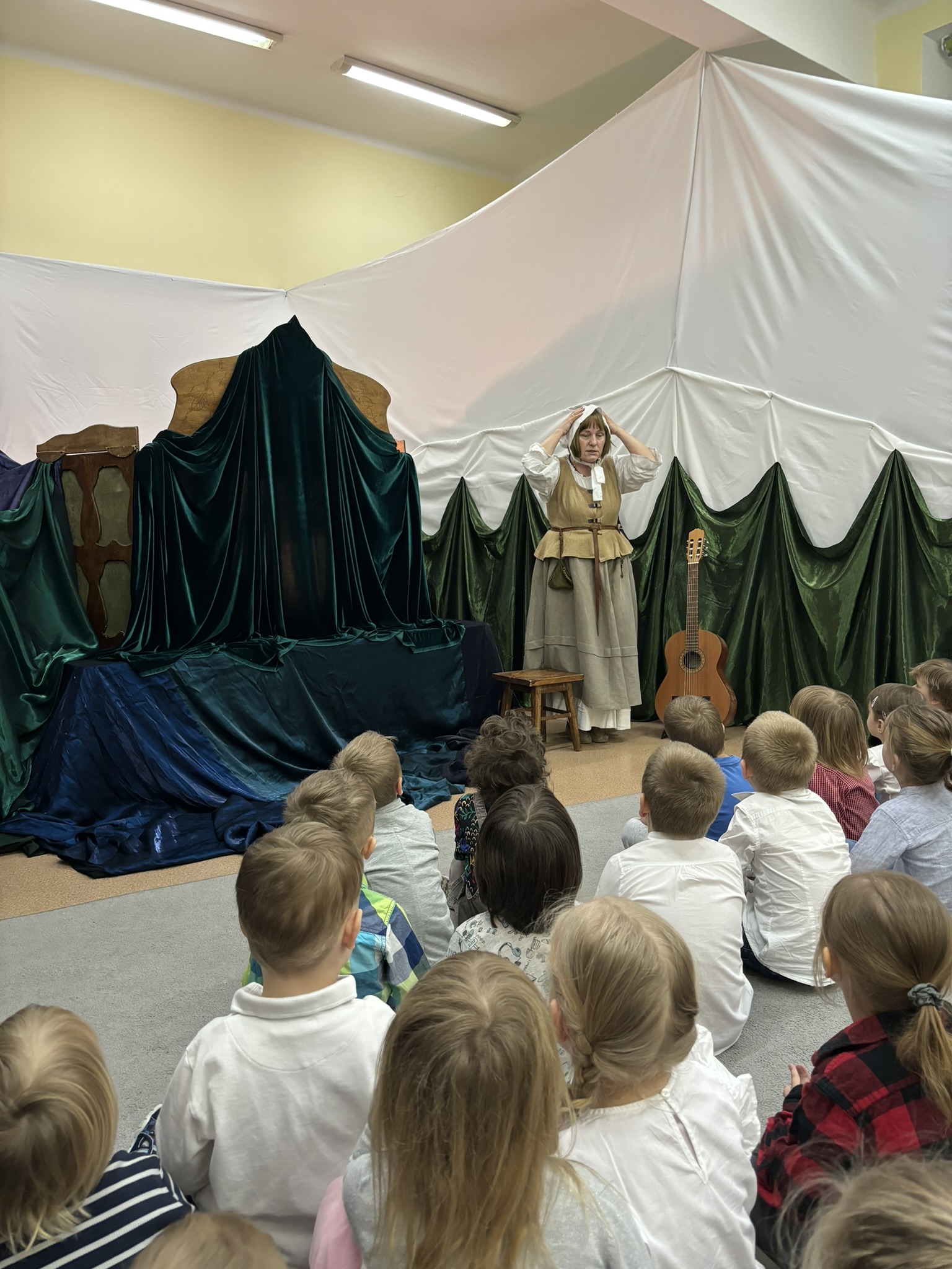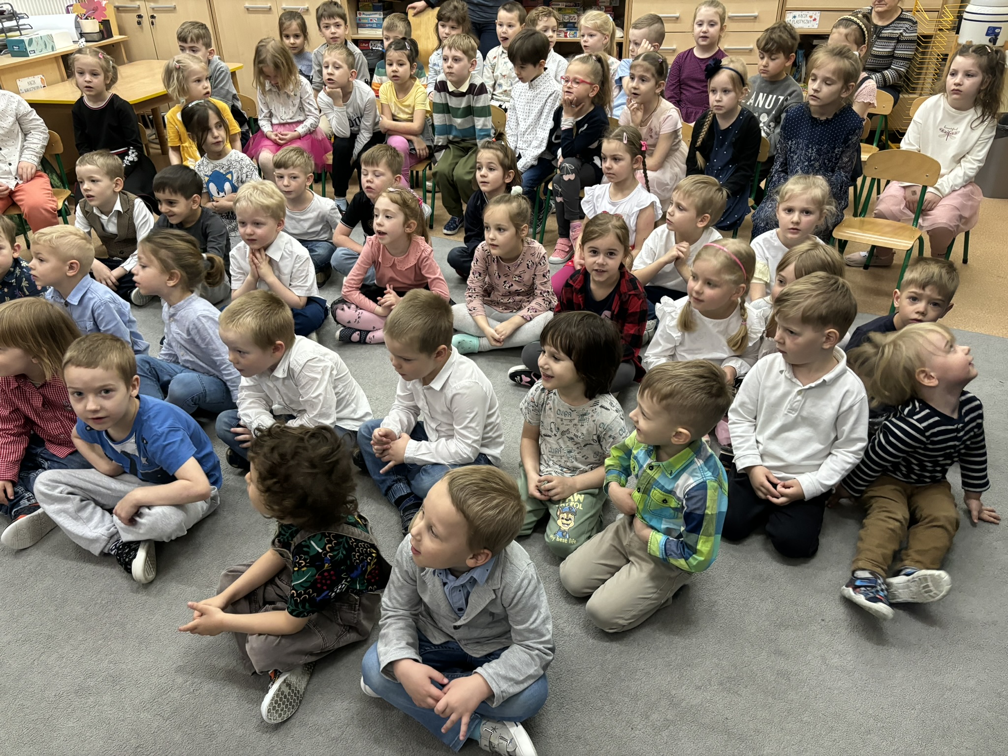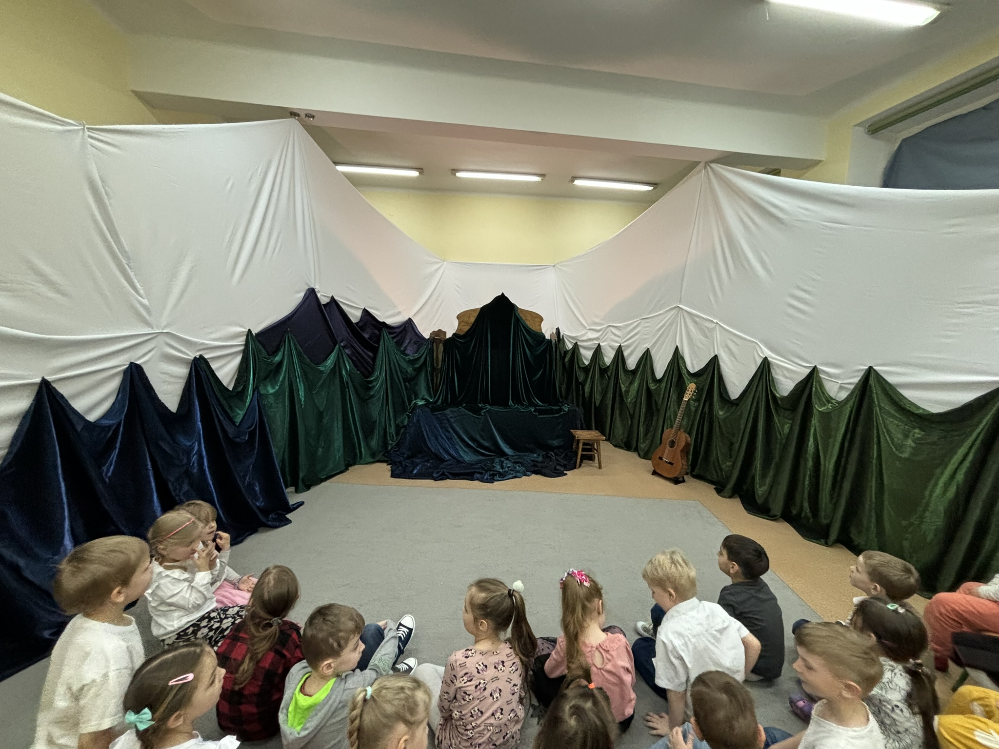 11 kwietnia do naszego przedszkola gościnnie przyjechał Tetr Latarenka z przedstawieniem pt. "Wesoła Chatynka". Twórczynie „Latarenki” wyczarowały cudowną scenografię. Niezwykły spektakl światła, cienia i muzyki.