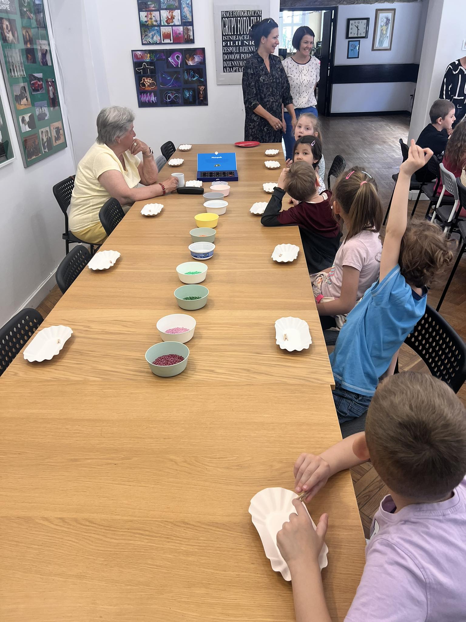 Dzieci z grupy "Jeże" w Klubie Starówka. Dziennym Domu Opieki Społecznej w Poznaniu. Te wzruszające spotkanie dwóch odległych pokoleń ma terapeutyczną moc dla obu stron