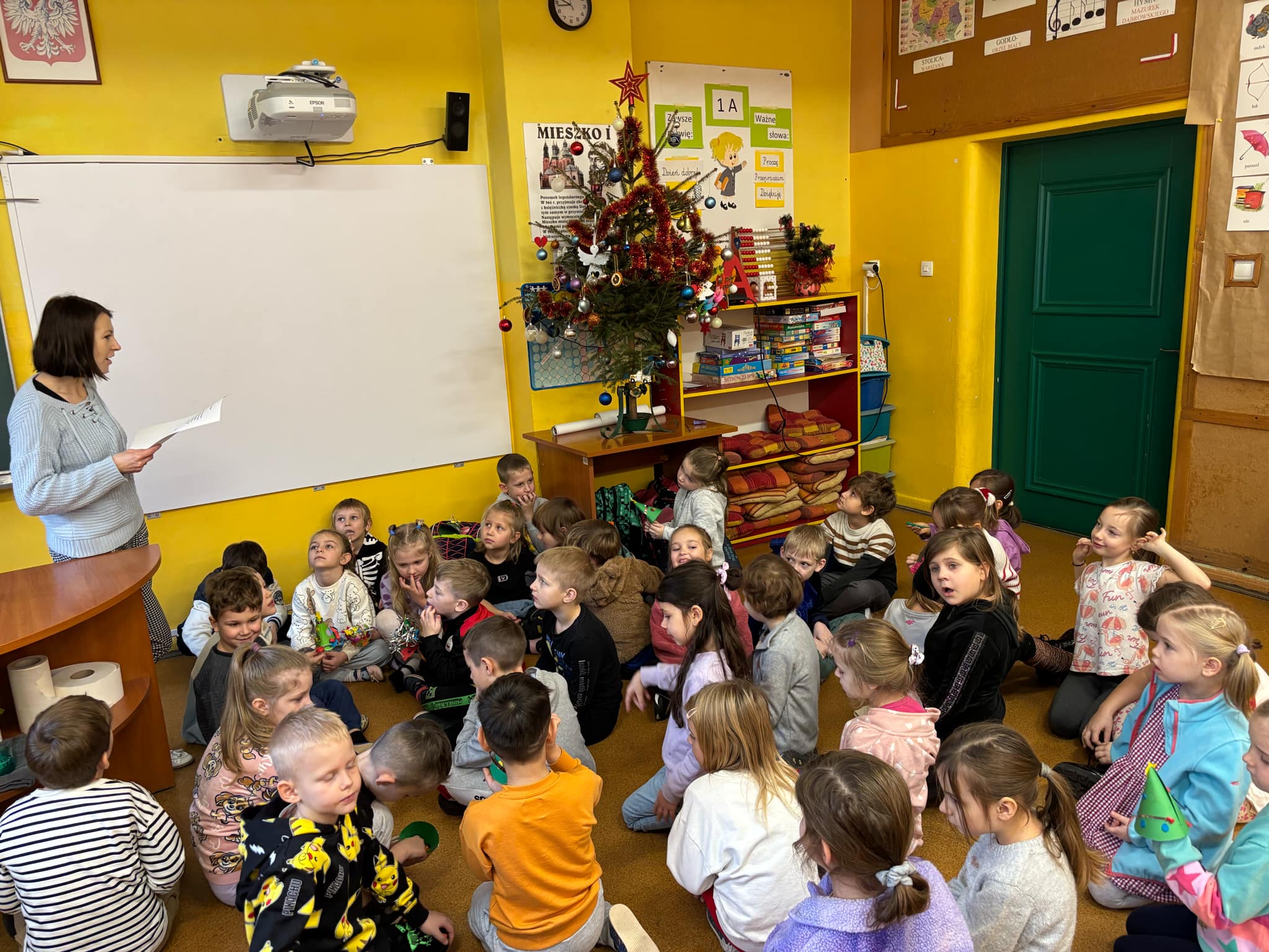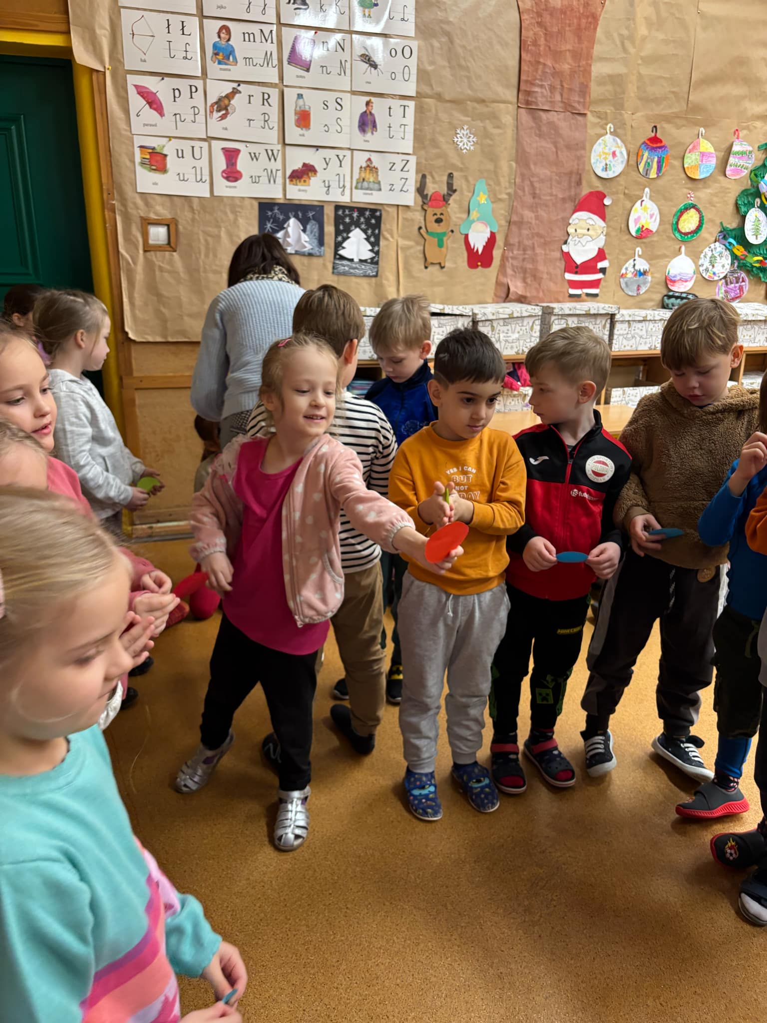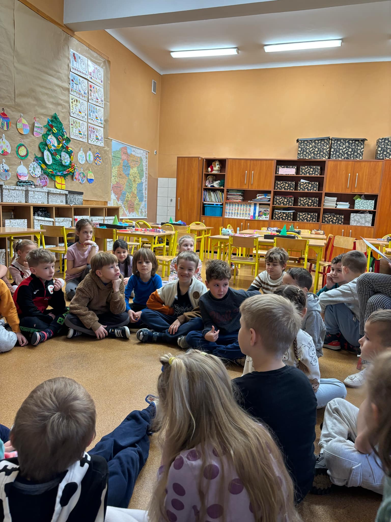 grupa "Jeży" odwiedziła klasę I w Zespole Szkolno- Przedszkolnego nr 4. Nasze przedszkolaki wzięły udział w zajęciach, których celem było zapoznanie się z jedną z tradycji Świąt Bożego Narodzenia- ubieraniem choinki