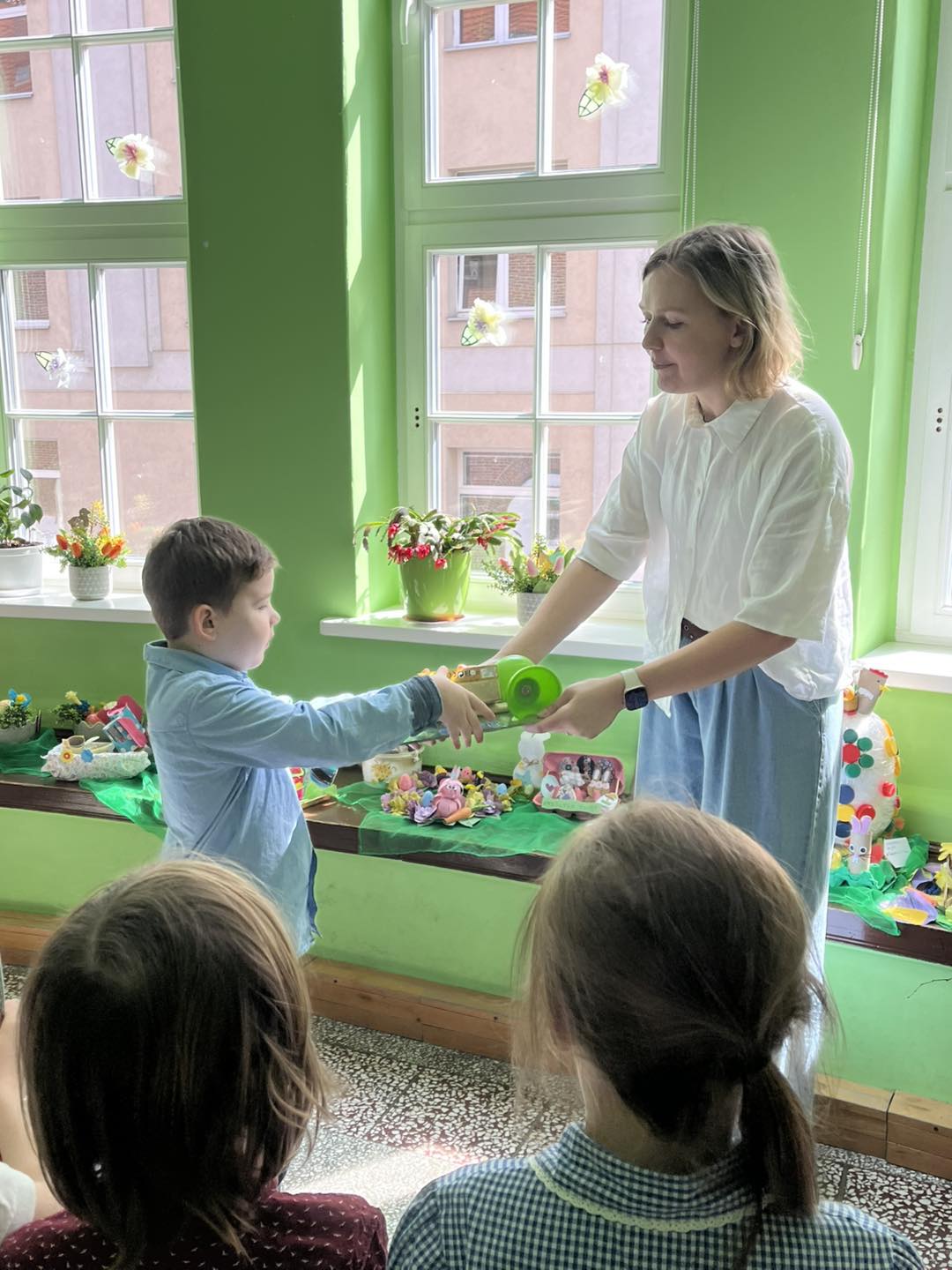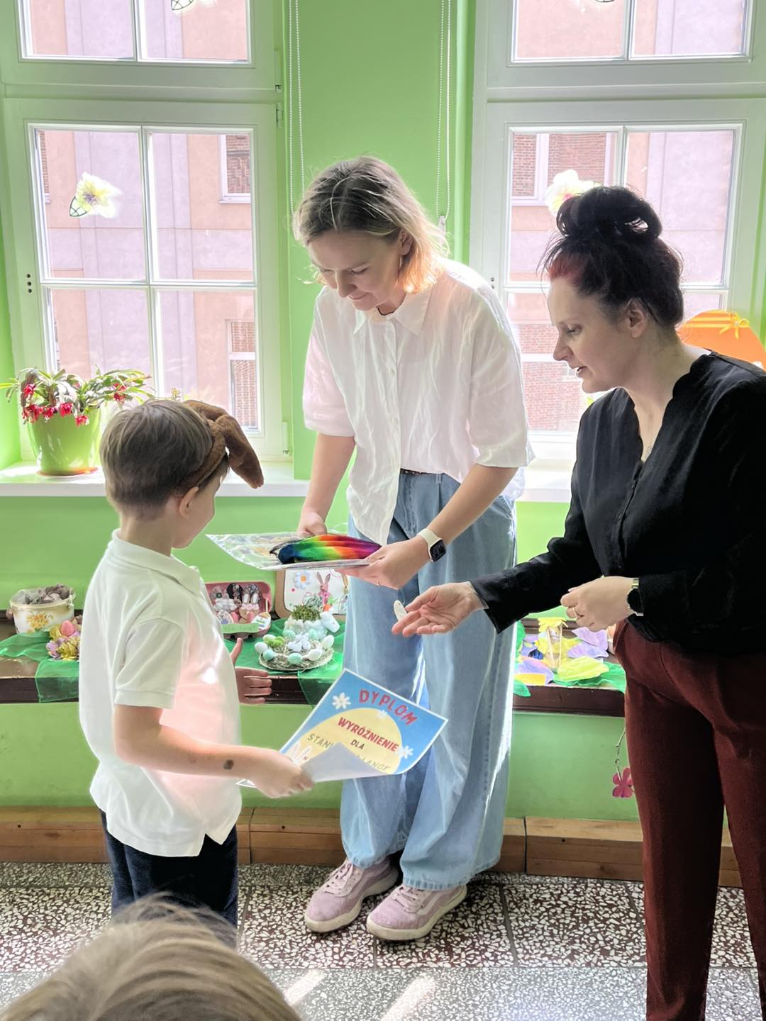 Rozstrzygnięcie międzyprzedszkolnego konkursu na stroik wielkanocny z materiałów do recyklingu oraz wręczenie nagród.