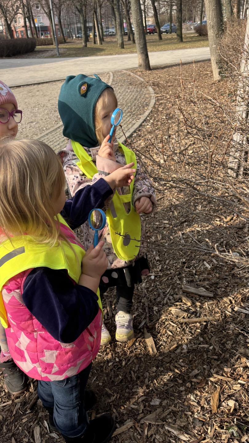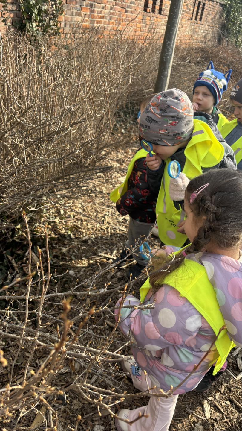 Krasnale na spacerze w poszukiwaniu pierwszych oznak wiosny